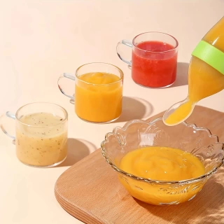 ● In order to balance the nutrients of their developing bodies and promote healthy growth, the silicone pouches are designed with a safety lock and soft silicone mesh. Babies can use them to handle any type of food, with the exception of liquid. Moms may rest easy knowing their child can start eating solid foods thanks to food feeder with safety straps. Because of its tempered texture, food pieces are avoided.